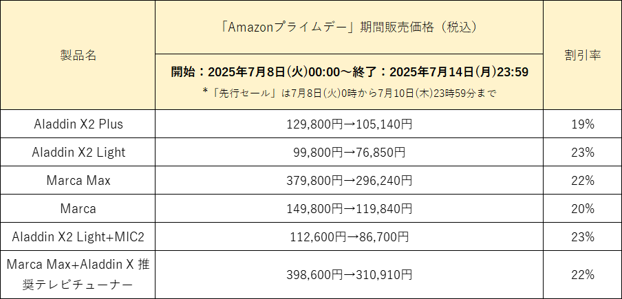 Aladdin X株式会社は、2025年7月8日(火)00:00~7月14日(月)23:59にわたりAmazonで開催される「プライムデー」にて対象商品が最大23%OFFとなる特別セールを実施します。