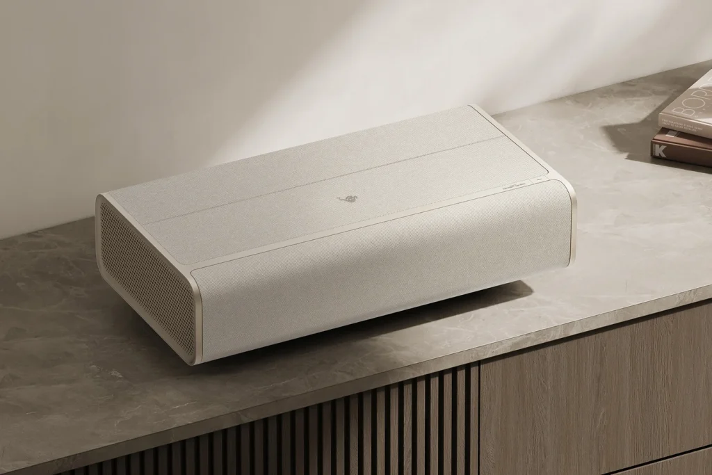 「Aladdin Marca Max」は、超短焦点プロジェクターの最上位モデルとして、IMAX EnhancedとDolby Visionの両認証を取得した4K対応モデルです。投射比0.177:1の超短焦点設計により、壁からわずか17.8cmで100インチの大画面を実現します。再生素材を用いた洗練された外観と、エンタメやヘルスケアなど多彩なオリジナルコンテンツを搭載し、上質な映像体験を生活空間に自然に取り入れることができます。