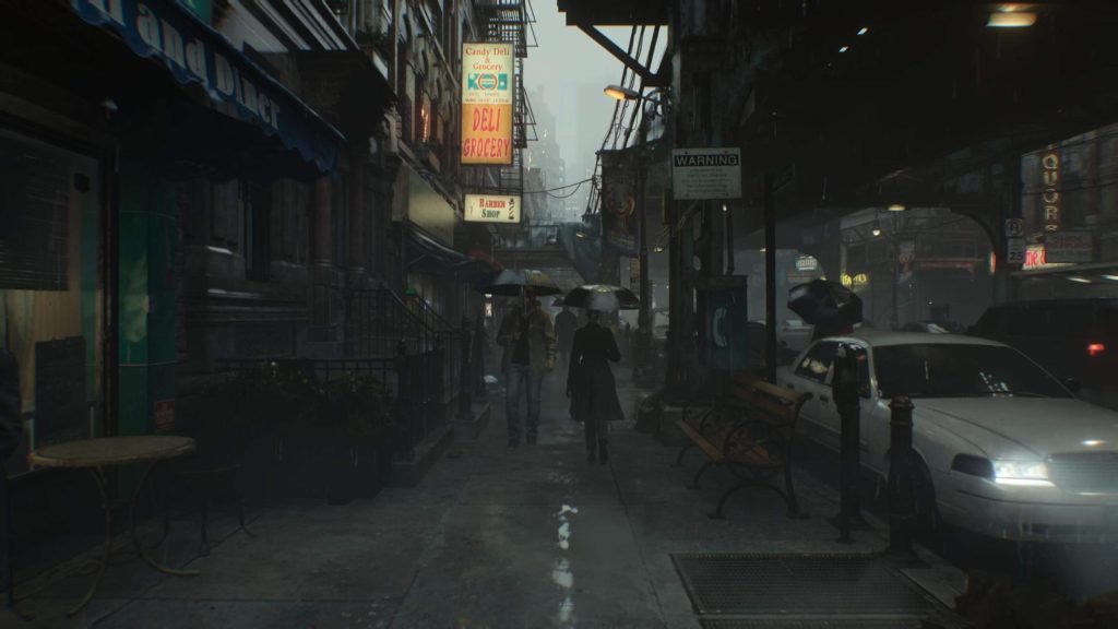 物語の冒頭、FBI捜査官であるグレースが街中を歩いて調査する建物へと向かうシーンがあります。このシーンは、一番最初にプレイヤーとしてグレースを操作できる訳ですが、ただ歩いているだけで、敵と遭遇するわけでもアイテムが落ちている訳でもなく、数秒で目的地に到着して次のイベントが発生します。もし、テレビのスピーカーで本作をプレイしていたら「このシーン別にいらないのでは?」と感じるかもしれません。しかし、ホームシアター環境では、ここが本作の音響クオリティを知らしめる「最高のデモンストレーション」であることに気づかされます。
