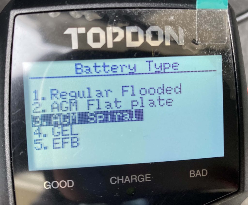 筆者の場合、オプティマバッテリーを使用しているので「AGM Spiral」を選択。