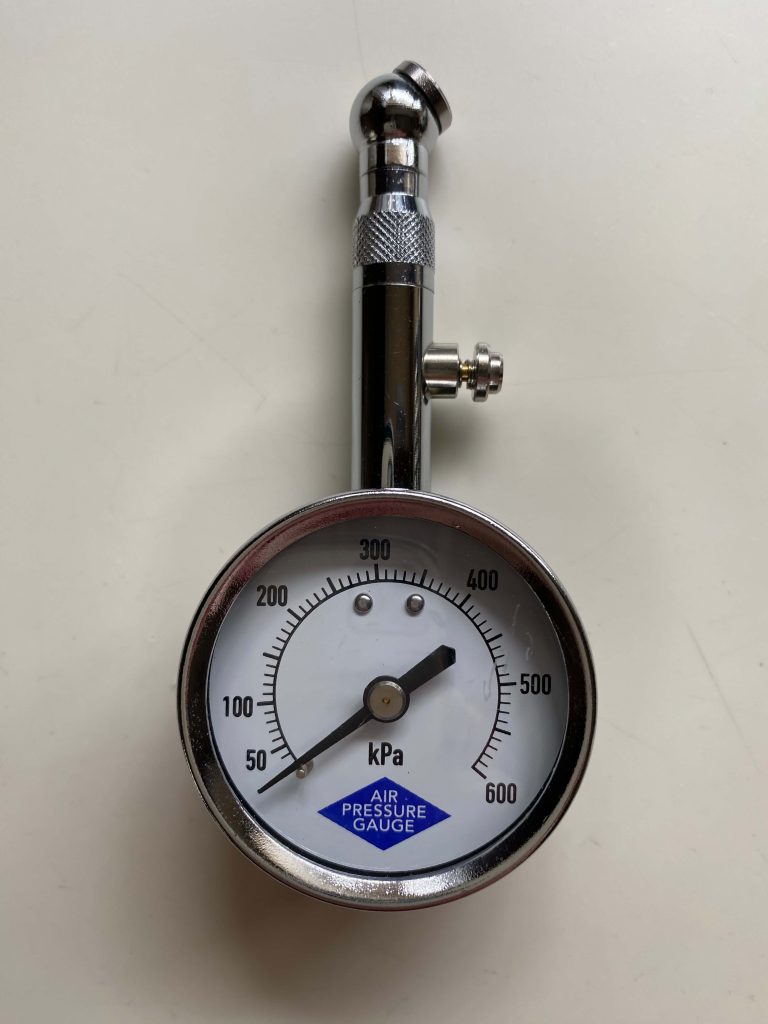 タイヤに空気を入れたら目的の空気圧になっているかエアゲージを使い再度チェックします。