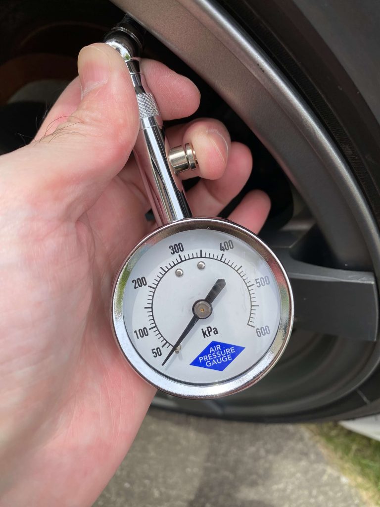 筆者は、自分の車のタイヤの空気圧を月に1回自分でチェックしています。0.1キロくらい空気圧が減っているタイヤが多い印象ですが、ほとんど空気圧が減っていないタイヤもあります。稀に0.2キロくらい空気圧が減っていることもあります。