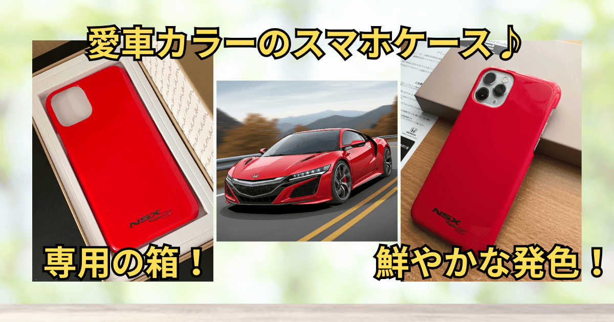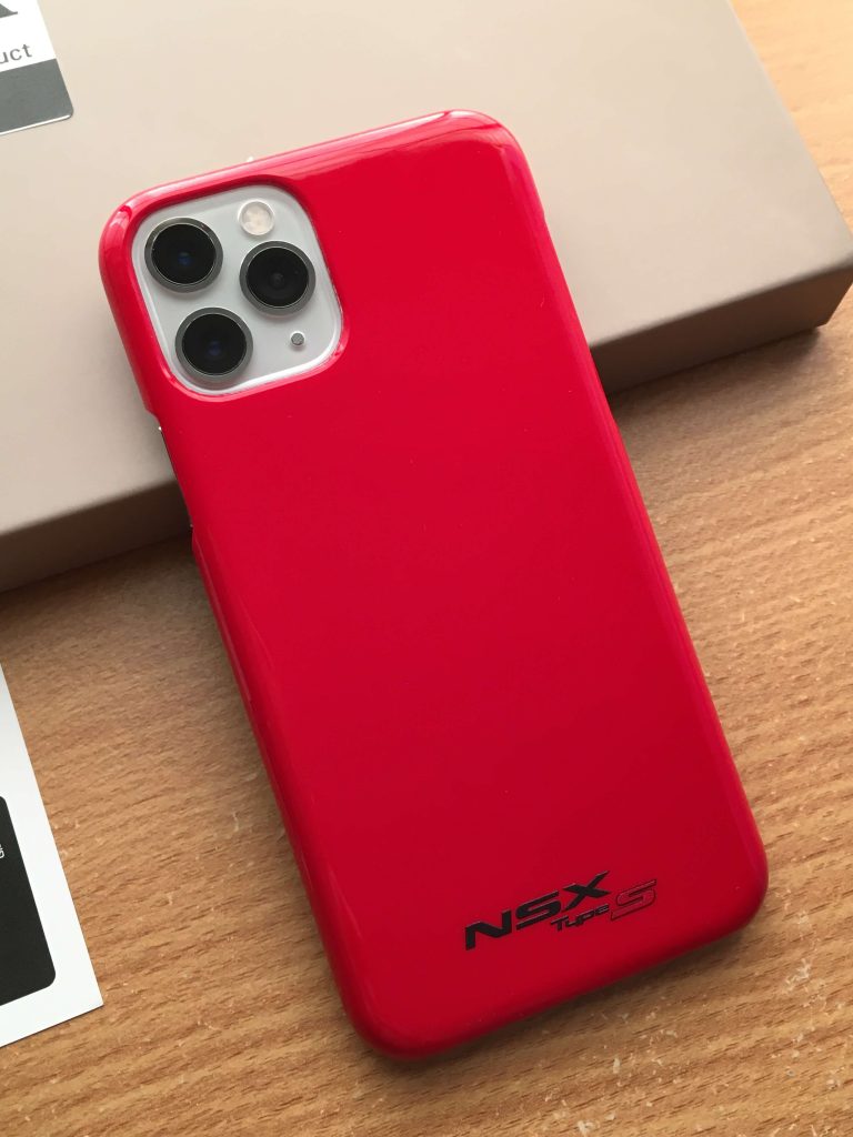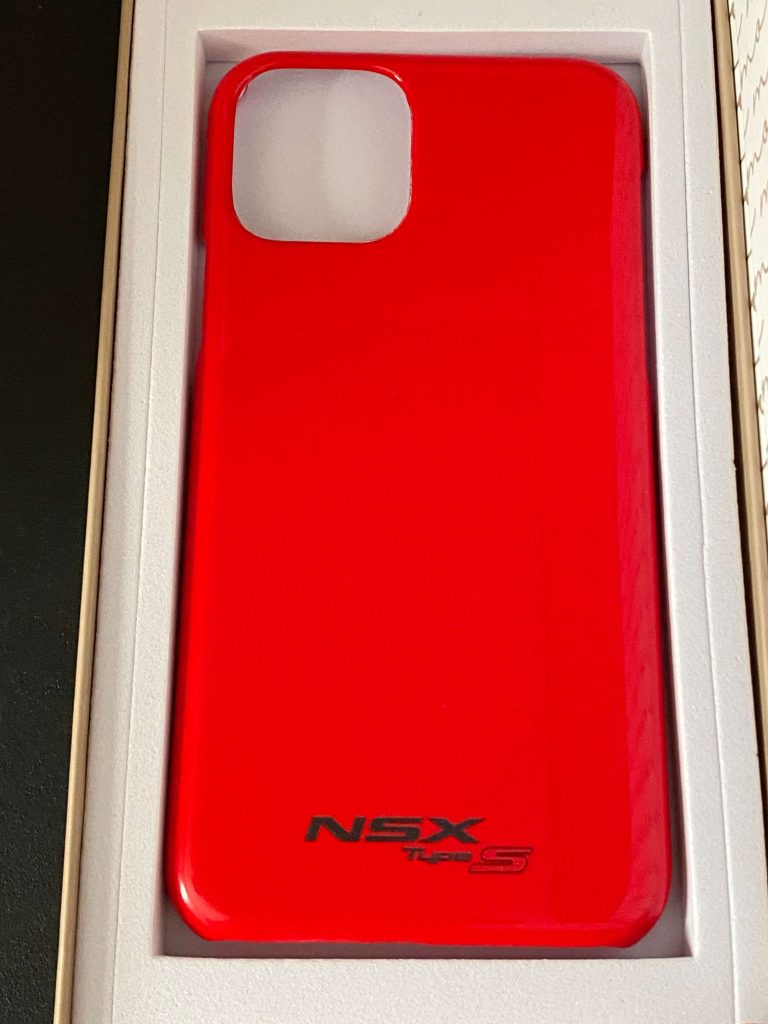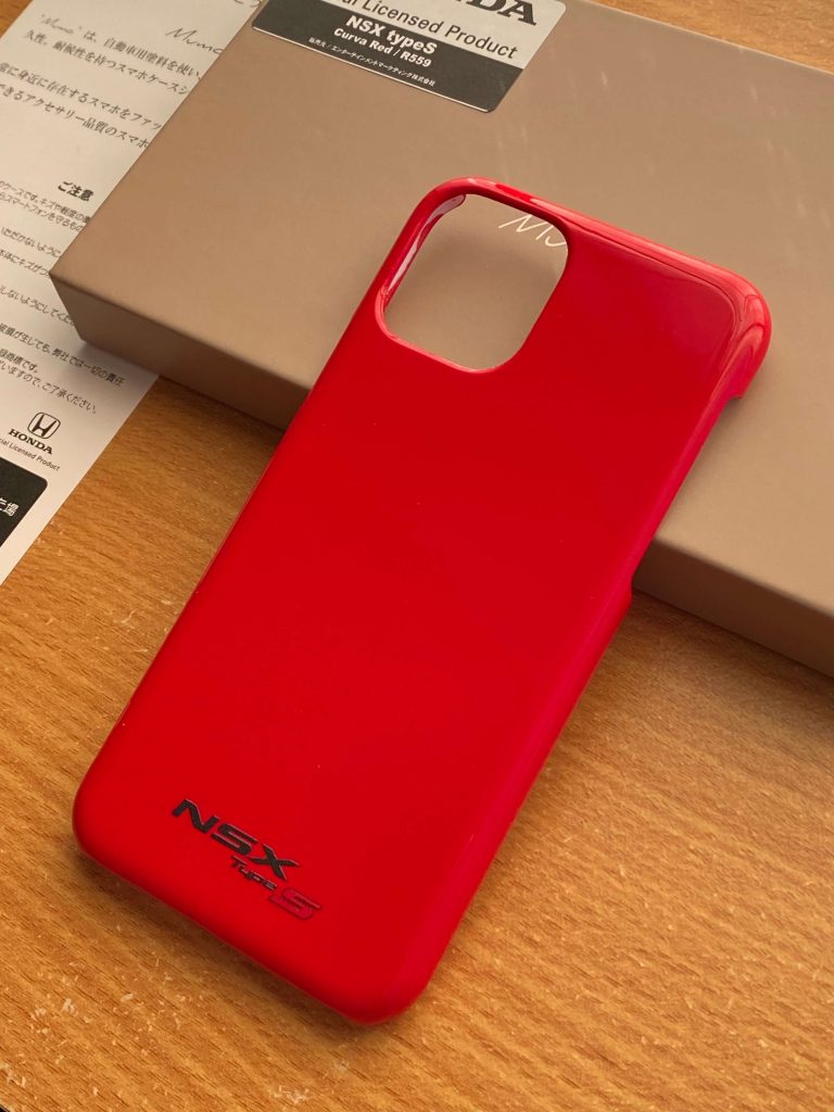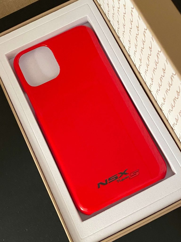筆者が選んだスマホケースは、NSX Type Sのクルバレッドです。筆者は、初代NSX(NA1型)のオーナーですが、muomou Shopのスマホケースのラインナップに初代NSXがないので、2代目NSX(NC1型)を選びました。