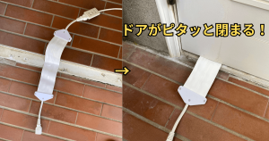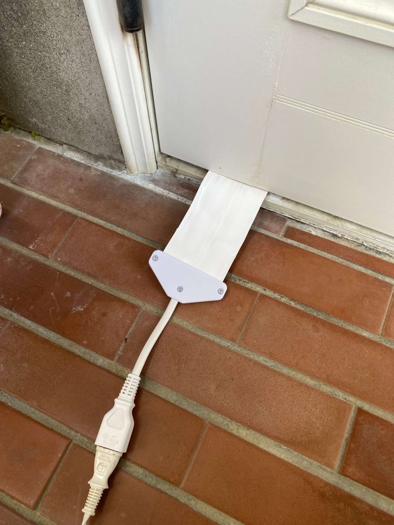 ここで活躍するのが「フラットコード」です。写真のようにドアのすき間を通すことができます。以前、屋外にセンサーライトを設置したときにも、家の中のコンセントから電源を取ることができて重宝しました。今回も真っ先にフラットコードのことが思い浮かび2回目の購入となりました。