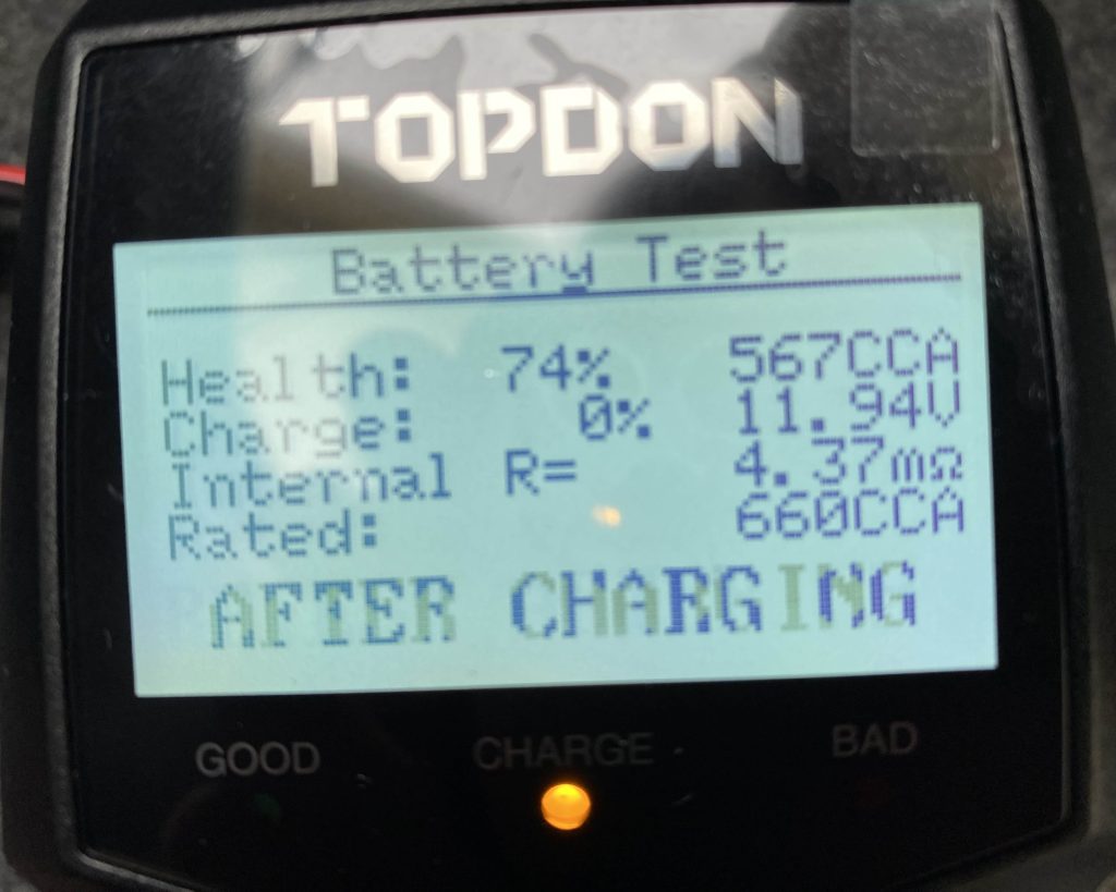 ※CCAテスターを持っている場合は、充電前のCCA値も測っておきましょう。