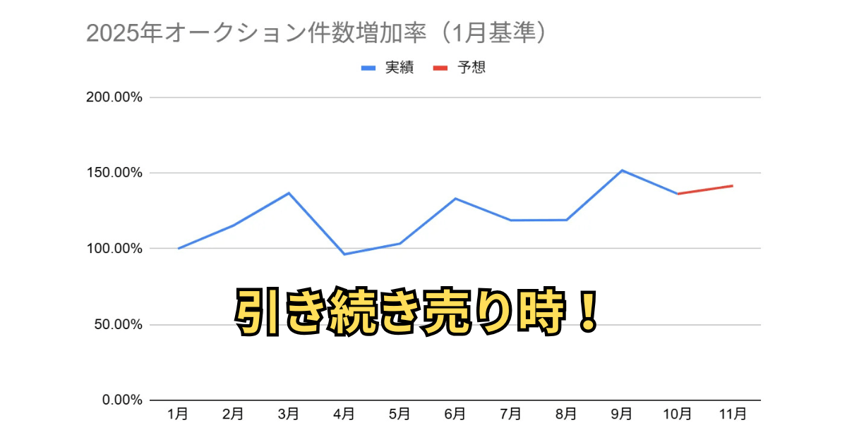 クイック・ネットワーク株式会社が2025年10月のセルカオークション出品データを分析した結果、市場は需要期(9月)を過ぎて落ち着きを見せているものの、売却検討者にとっては有利な状況が継続しています。
